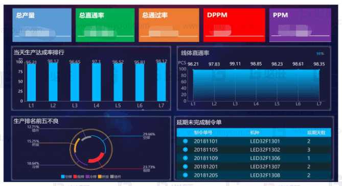 可視化—車間看板:透過看板工具及生產過程數據實現可視化看板的制作及呈現。