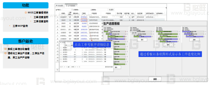 生產進度數字化:實時展現訂單、工單在各個工序的生產進度(計劃數量、產出數、不良數、在制數)、工位及員工的實時生產進度。