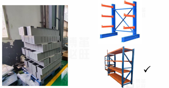 方案:使用分隔式貨架,取時方便,現場整齊美觀